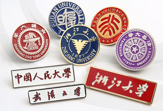 一金屬,合樂禮品打造的學?;照?,采用鋅合金材質(zhì),經(jīng)過壓切,咬版,拋光,上色,利用金屬的光澤將學校logo和圖案很好的展示出來,常用仿琺瑯工藝或者烤漆工藝。   一象征,合樂禮品定制的?;招卣拢芙o到佩戴者一個身份的象征,在無形中增加了紀律的約束,規(guī)范行為,提高學校的知名度,同時展現(xiàn)出學校的特征,讓人容易看到?;斩涀W校。   一紀念,合樂禮品定制的真琺瑯學?;照拢墚斪鍪詹仄肥詹兀嗄昙皫资旰笠琅f不褪色,當年的情懷依舊歷歷在目。真琺瑯徽章采用紅銅材質(zhì),將經(jīng)過粉碎研磨的琺瑯釉料,涂施在銅質(zhì)或銀質(zhì)器物上,經(jīng)過850°C高溫燒結(jié)金屬表面上,顏色持久,可保百年不變色。