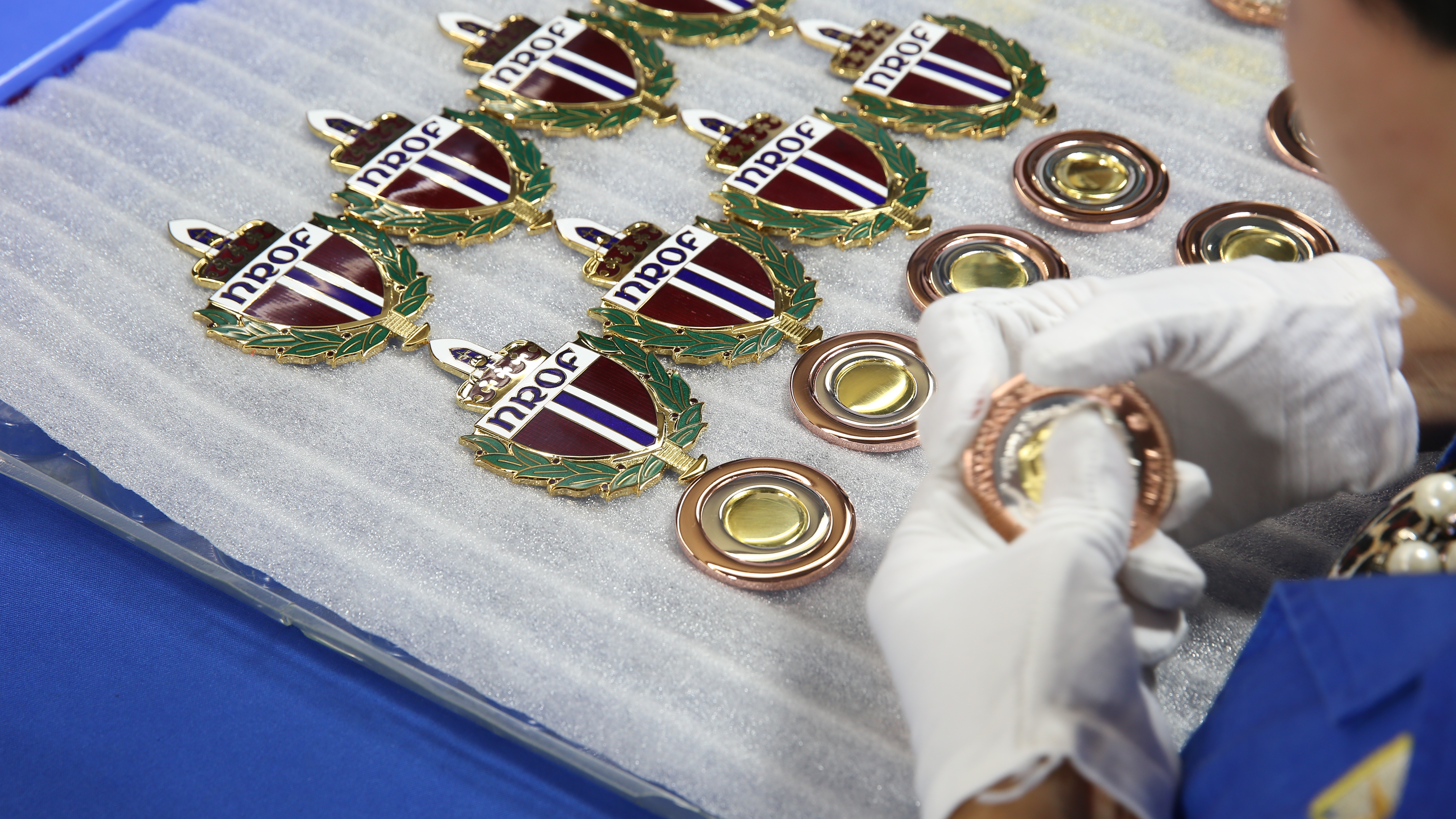 獎(jiǎng)牌徽章作為身份和地位的象征,每一個(gè)獎(jiǎng)牌徽章的定制都需要經(jīng)過(guò)9大標(biāo)準(zhǔn)工藝制造流程。